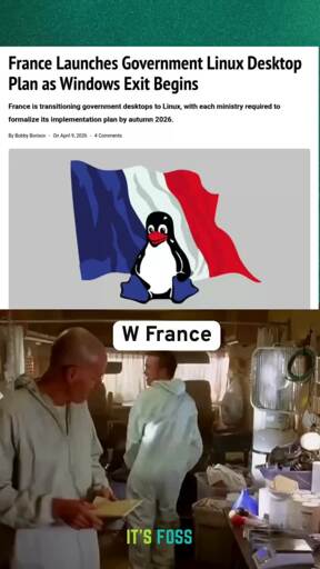 arrow-up11arrow-down1external-linkFrench government to transitions to Linuxplus-squareloops.videon7gifmdn@lemmy.ca · 7 days agomessage-square0linkfedilink