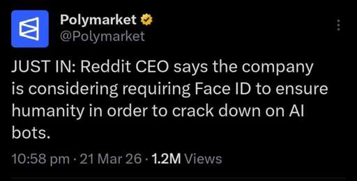 Reddit CEO says facial verification may be introduced. Ostensibly to prevent bots.