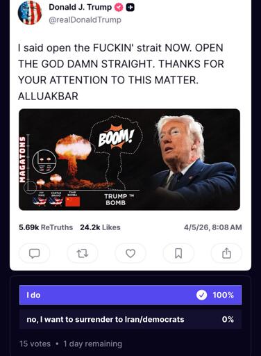 I literally broke an accidental streak of not logging into x for like a year to make sure the last three ‘screenshots’ of trump weren’t real, including this one. Seriously though, was the ‘praise Allah’ one real or not? I honestly can’t tell for sure if it’s satire or just something one of his handlers deleted.